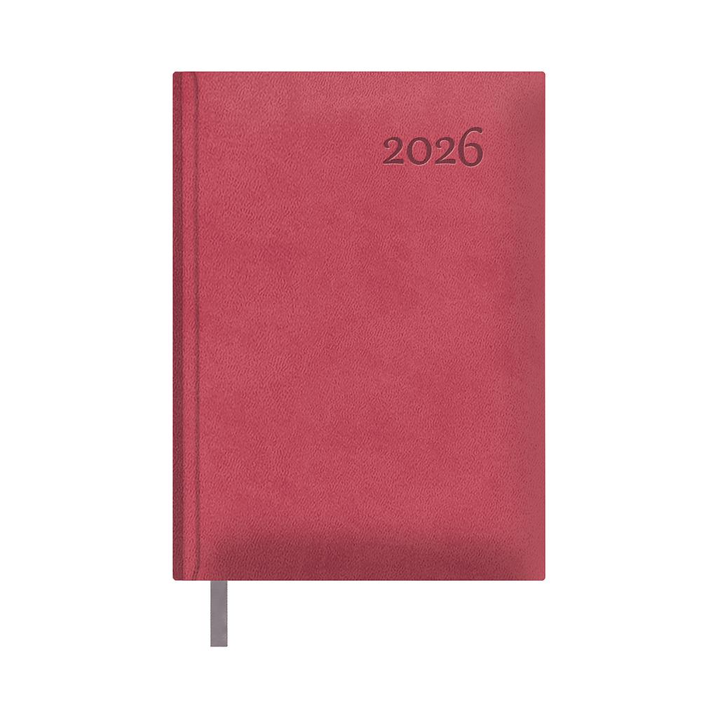 Agenda anual 14x20 cm. Cubierta realizada en polipiel con cartón almohadillado. Papel offset ahuesado de 70gr. Incluye secciones como Datos personales, Calendario trienal, Planning del año, Páginas para anotaciones y Listín.