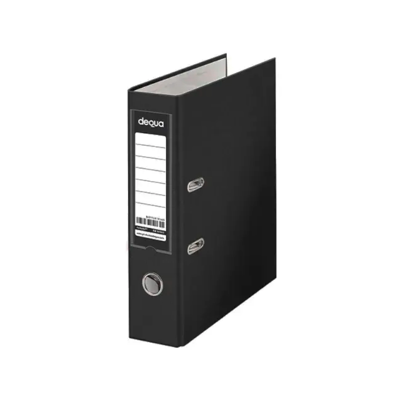 archivador Dequa con rado encolor amarillo (lomo 70mm), tamaño Folio - Fabricado en cartón forrado en plástico - Mecanismo de palanca niquelado de calidad superior - Contiene un orificio en el lomo que nos facilita la extracción del archivador, tanto d