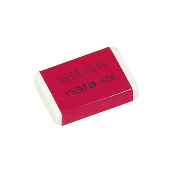 Goma de borrar suave, no abrasiva y versátil. La goma MILAN NATA 612 sirve para todo tipo de superficies. No daña el papel. Es una goma blanca biselada para facilitar su uso. Sus medidas son: 7,8 x 2,3 x 1,2 cm. Un imprescindible en la oficina y en los estuches escolares. Ref. Cat. 170011.