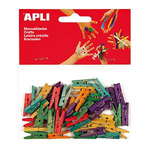 BOLSA 45 MINI PINZAS MADERA 25x3mm COLORES SURTIDOS APLI Ref. 13479