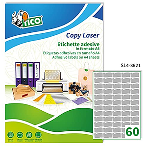 Caja de 6000 etiquetas en papel plata satinado,ovaladas, 36x21 mm Tico SL4-3621-