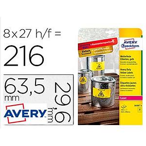 CAJA de 8 h de ETIQUETAS AVERY POLIESTER AMARILLO 63,5X29,6 Ref. L6105-8