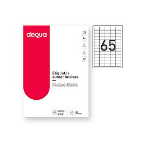 CAJA DE 100 HOJAS DE ETIQUETAS ADHESIVAS BLANCAS TAMAÑO:38x21.2mm. DEQUA